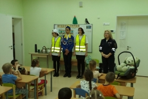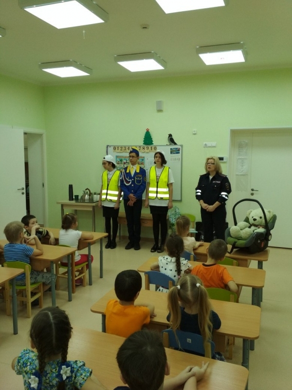 Инспекторы напомнили дошкольникам, о разновидностях пешеходных переходов (подземный, надземный и наземный), где и как правильно переходить проезжую часть по регулируемому и нерегулируемому пешеходному переходу, какие меры безопасности необходимо соблюдать во время движения. Полицейские рассказали, как вести себя, если услышали звуковую сирену и увидели проблесковые маячки, чтобы не стать участником дорожно-транспортного происшествия. Напомнили о правилах перевозки несовершеннолетних пассажиров в автомобиле, на примере детского кресла и медведя-пассажира.