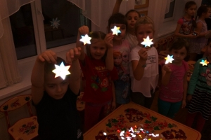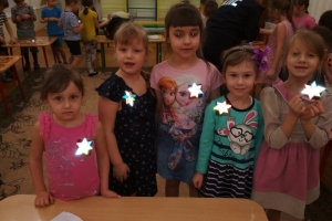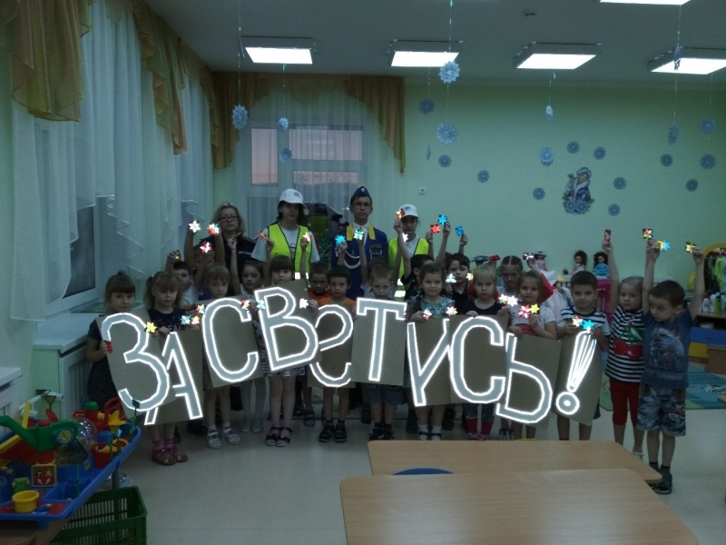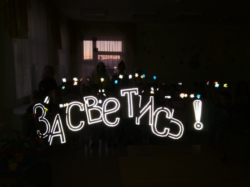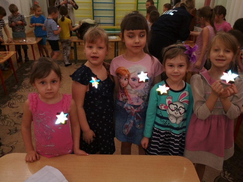 Под руководством воспитателей и инспекторов и ребят из отряда ЮИД дети приступили к важному творческому занятию: из фигурок, вырезанных из специальной светоотражающей пленки, сделали настоящие светоотражатели. В конце занятия ребята наглядно убедились, как ярко светятся их отражатели в темной группе в свете маленькой фотовспышки телефона. Ребята сделали по несколько отражателей: один оставили себе, а остальные подарили детям из ясельной группы.