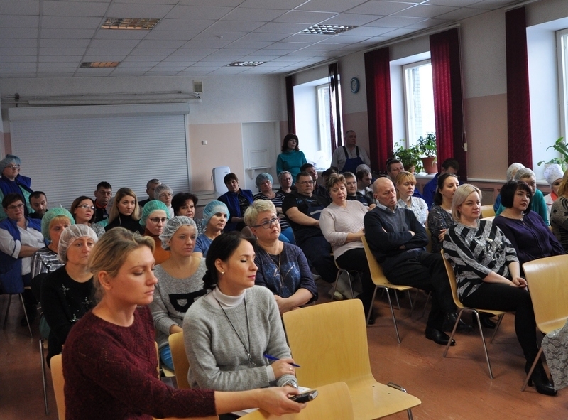 Генеральный директор завода Игорь Трубин рассказал о производственной деятельности предприятия. Завод выпускает 48 видов продукции, обеспечивает более 50% потребления жителями Мурманской области молочной продукции, в том числе, 75% кефира, 30% молока. В сутки здесь перерабатывается более 30 тонн молока, причем, в выпуске продукции не используется восстановленное молоко. На предприятии уделяется постоянное внимание модернизации производства и выпуску новой продукции. К примеру, 15 миллионов рублей были затрачены на установку осенью 2017 года линии для производства сыра «Маскарпоне» и «Творожного сыра пастеризованного». Первая партия сыра, 3 тонны, отправлена в Москву для реализации компанией «Бруно». Для жителей Североморска и Мурманской области этот сыр, расфасованный в упаковки по 200 и 400 граммов начнут выпускать через пару недель.