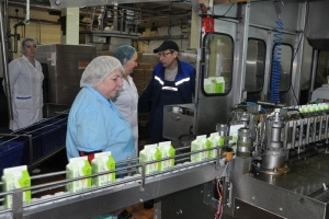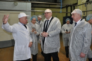Владимир Евменьков и Евгений Алексеев осмотрели предприятие, а затем встретились с трудовым коллективом молочного завода.