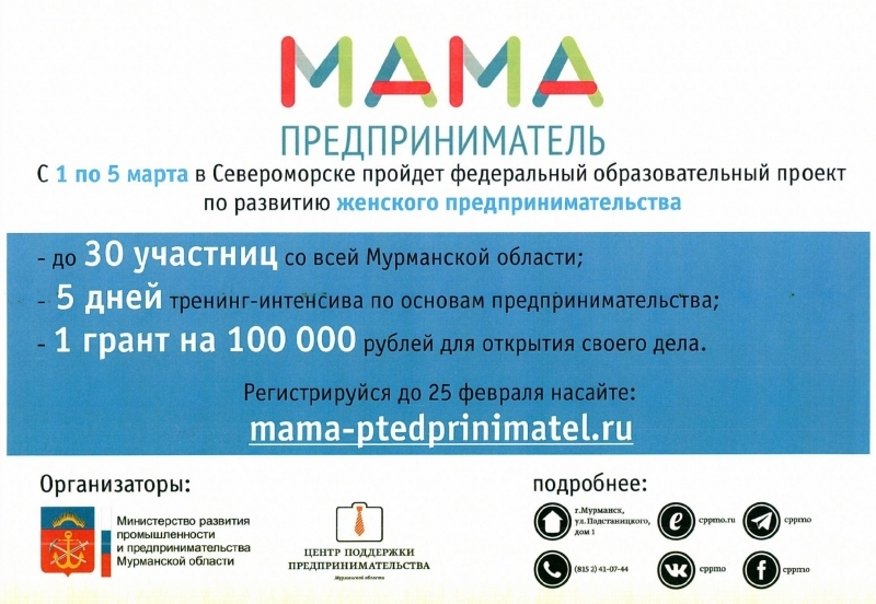 С 1 по 5 марта в Североморске пройдет федеральный образовательный проект по развитию женского предпринимательства