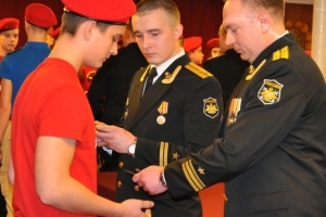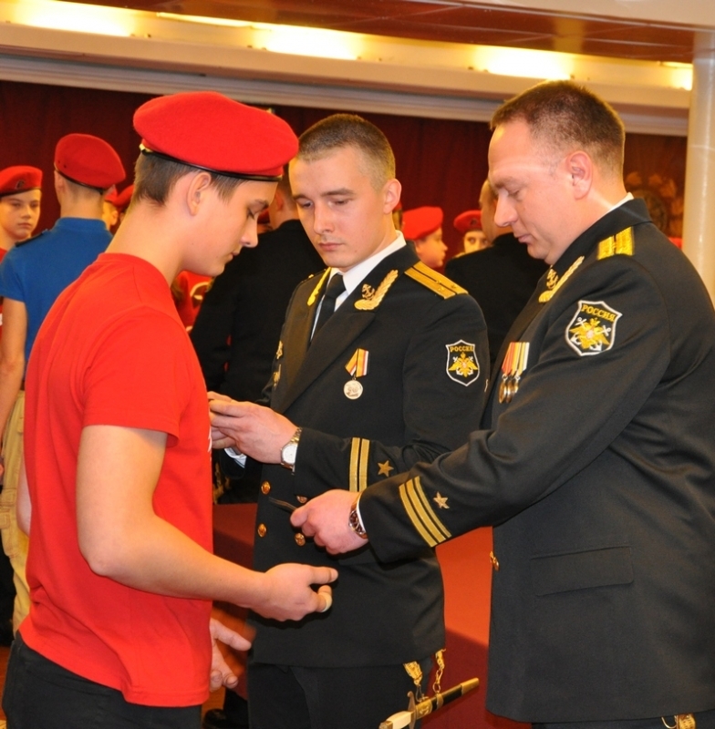 Знаки юнармецам вручали офицеры ТАРКР «Петв Великий».