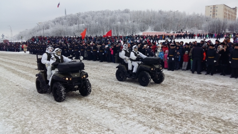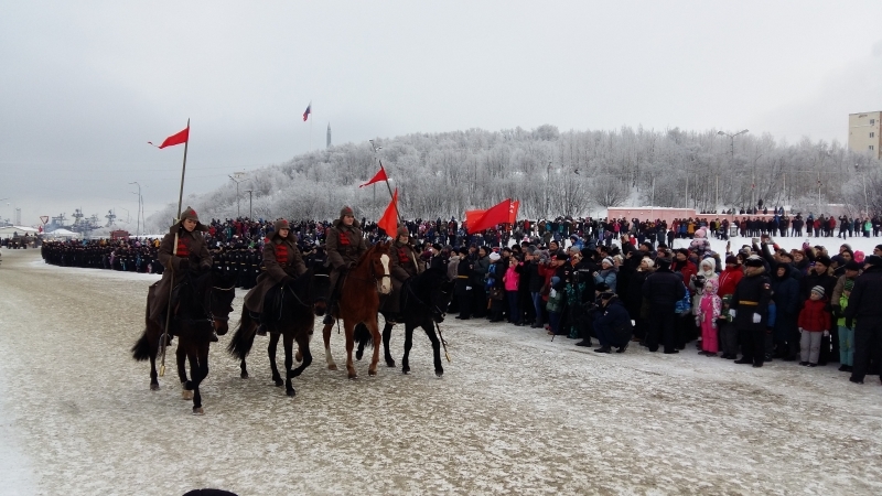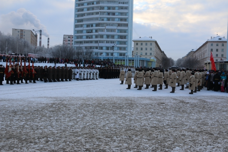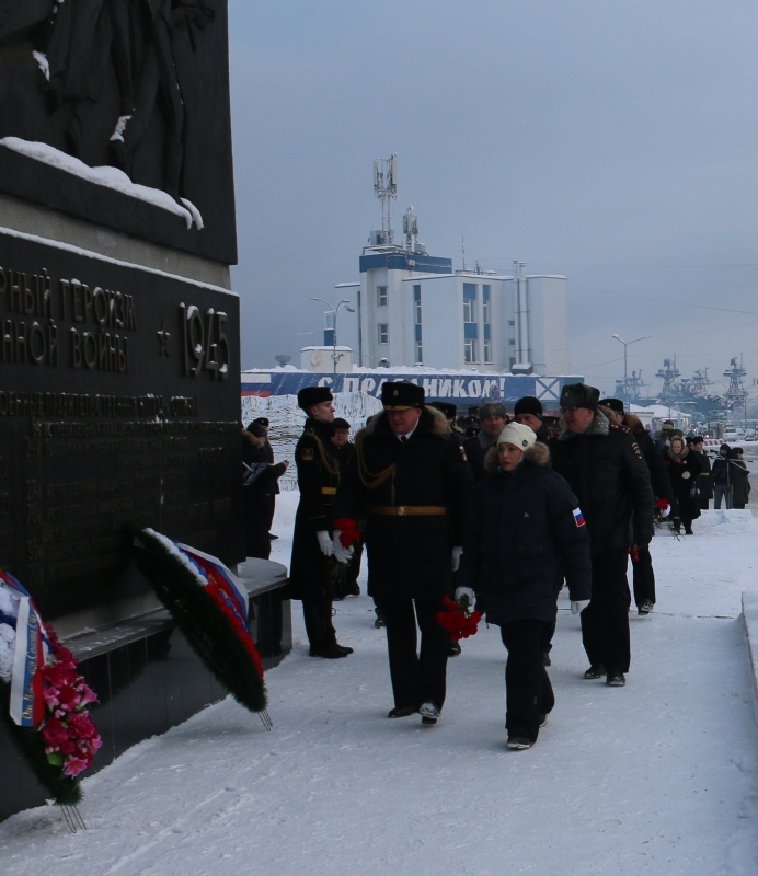 Сегодня на Приморской площади г. Североморска состоялся митинг, возложение венков и цветов к памятнику Героям-североморцам - защитникам Заполярья, торжественное прохождение исторических взводов и воинских частей Северного флота. На территории соединения надводных кораблей Северного флота прошла торжественная церемония подъема Военно-морского флага и присвоения почетного наименования «Валерий Федянин» противодиверсионному катеру.