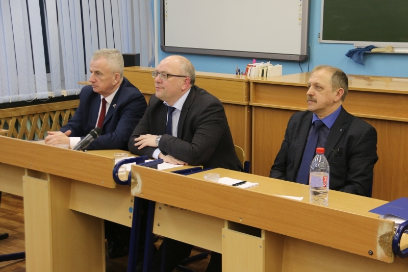 1 марта в средней школе № 5 поселка городского типа Сафоново состоялась встреча Главы ЗАТО г. Североморск Владимира Евменькова с жителями, в которой также приняли участие председатель Совета депутатов Евгений Алексеев, первый заместитель Главы ЗАТО г. Североморск Андрей Сахаров, председатель Комитета по развитию городского хозяйства администрации ЗАТО г. Североморск Александр Савченко и директор МБОУ СОШ №5 Евгения Гордеева.