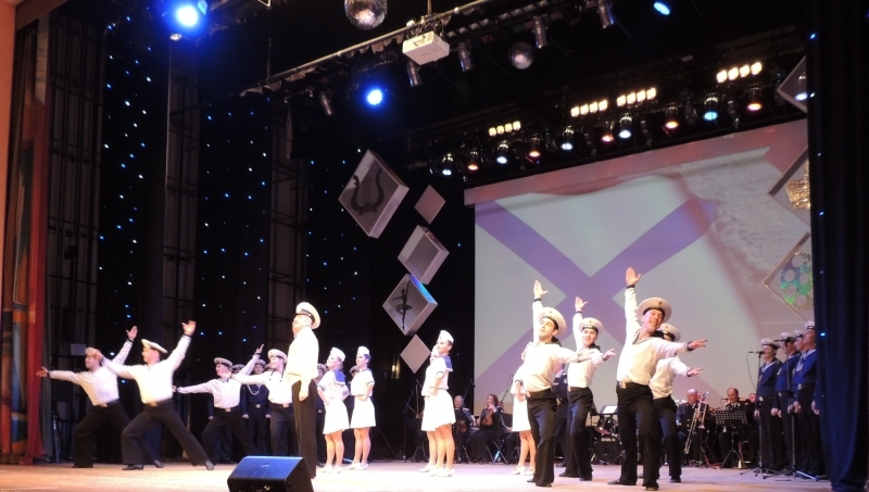 Продолжил праздник ансамбль песни и пляски Краснознаменного Северного флота. На сцене Дворца культуры «Строитель» коллектив ансамбля представил свои лучшие вокальные и хореографические номера.