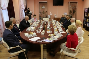 В День города, 18 апреля, в североморской Центральной городской библиотеке имени Леонида Крейна Глава ЗАТО г.Североморск Владимир Евменьков и председатель Совета депутатов Евгений Алексеев встретились с почетными гражданами флотской столицы.