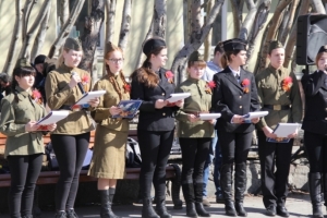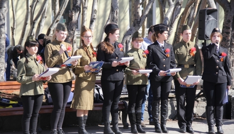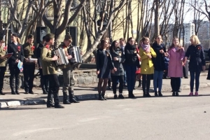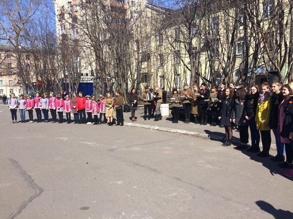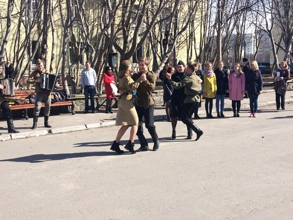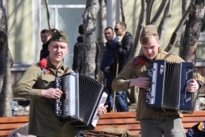 Коллективы североморского Дома детского творчества подготовили театрализованную программу для горожан. Акция проходила под песни и стихи военных лет, в исполнении североморцев одетых в военную форму красноармейцев времен Великой Отечественной войны.