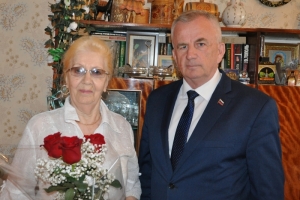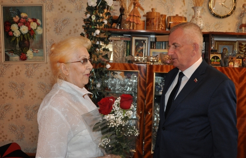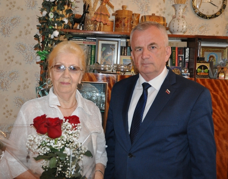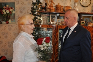 Почетному жителю Североморска Валентине Васильевне Демидовой исполнилось 80 лет. С этим знаменательным юбилеем Валентину Васильевну от имени Главы ЗАТО г. Североморск, депутатов представительного органа власти, жителей флотской столицы поздравил председатель Совета депутатов Евгений Алексеев, который вручил юбиляру букет роз и памятный подарок.