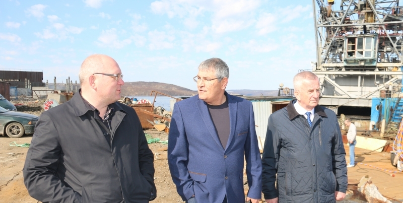 В финале городского рейда руководители муниципалитета посетили территорию бывшего завода ЖБИ. Год назад этот объект приобрела компания «Баррикада», которая занимается утилизацией списанных военных кораблей. В течение года компания проводила подготовительные работы, в ходе которых, был проведен ремонт общежития, подготовлена территория, частично восстановлены гидротехнические сооружения причального фронта, оборудован слип для подъема кораблей на берег. В настоящее время организация уже приступила к выполнению контракта. Из г.Полярного поступил первый объект для утилизации – дизельная подлодка «Вологда».