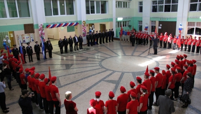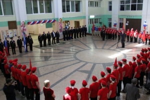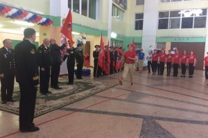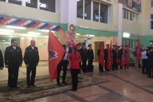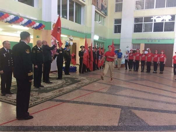Вчера в североморской средней школе № 7 состоялась торжественная церемония вручения знамен юнармейским школьным дружинам города.