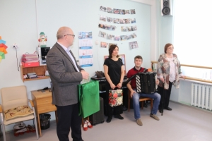 Владимир Евменьков поздравил коллектив ансамбля «Мастерок» с победами в конкурсах и вручил подарки от администрации ЗАТО г. Североморск: фотоаппарат и вокальную радиосистему.
