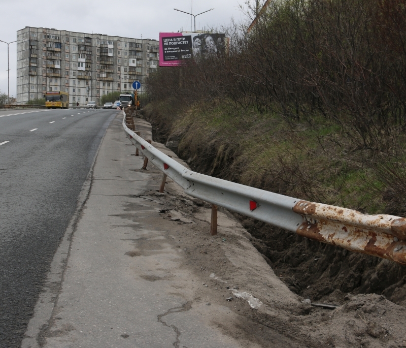 Финишной точкой сегодняшнего городского рейда, стал проезд улица Корабельная - улица Сивко в районе штаба Северного флота. Здесь проблема заключалась в том, что в отсутствие ливневой канализации в период таяния снега и обильных осадков дорогу затапливало, вода стекала к искусственной неровности и размывала асфальт. На сегодняшний день подрядной организацией оборудован сток для отвода воды и заменено бордюрное ограждение.