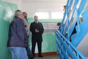 Следующий пункт – улица Флотских Строителей. Главная цель визита – проверить качество проведения косметического ремонта подъезда в доме №5. На момент проверки ремонт в подъезде был полностью завершен, качество выполнения работ не вызвало замечаний у проверяющих. В этом году в ЗАТО г.Североморск уже было отремонтировано 32 подъезда, еще в 40 планируется провести косметический ремонт до конца 2018 года.