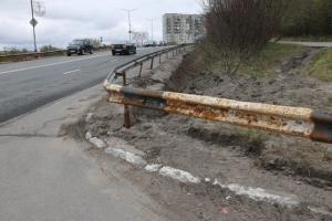 Первая остановка – улица Душенова. Здесь, в рамках контракта с компанией «Север-Авто», в ближайшее время будет заменен участок ограждения проезжей части, от улицы Северная Застава до поворота на улицу Саши Ковалева – всего 158 метров. Остальные отбойники в городе будут очищены от старой краски и заново покрашены.