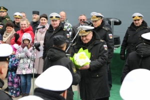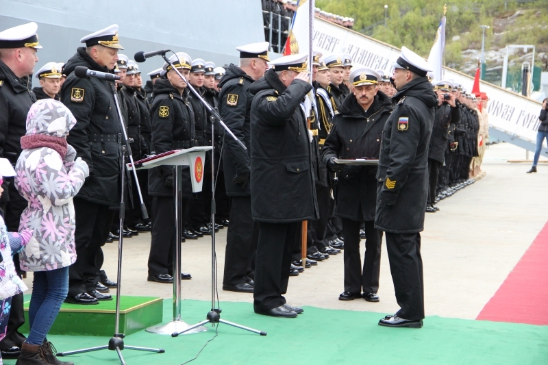 В торжественной встрече судна приняли участие Главнокомандующий Военно-морским флотом России адмирал Владимир Королёв, командующий Северным флотом адмирал Николай Евменов, Глава ЗАТО г. Североморск Владимир Евменьков, родственники экипажа и военнослужащие Северного флота.