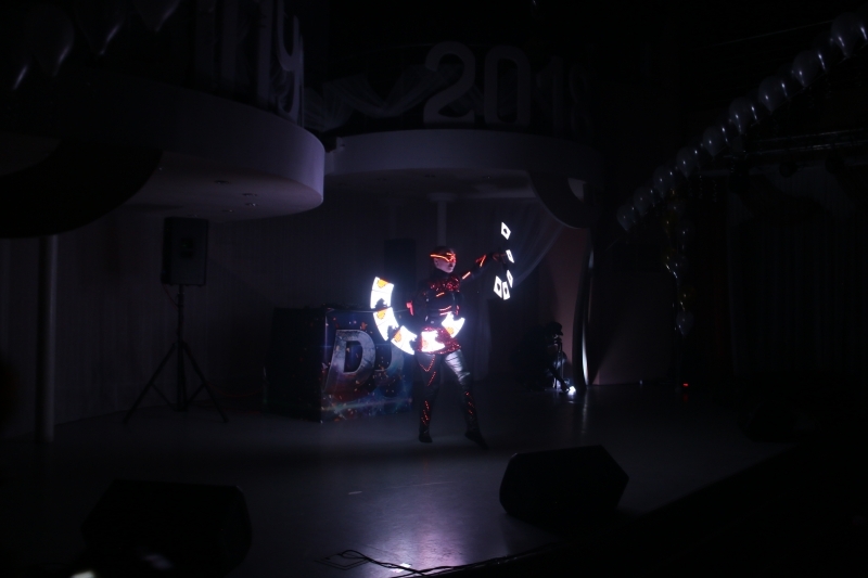 Еще одним приятным сюрпризом для выпускников стало световое шоу в исполнении мурманского коллектива «Ифрит» и интерактивная танцевальная программа «11 музыкальных лет». Специалисты ЦДМ собрали в микс самые популярные песни каждого года с 2008 по 2018 гг. – время учебы выпускников.