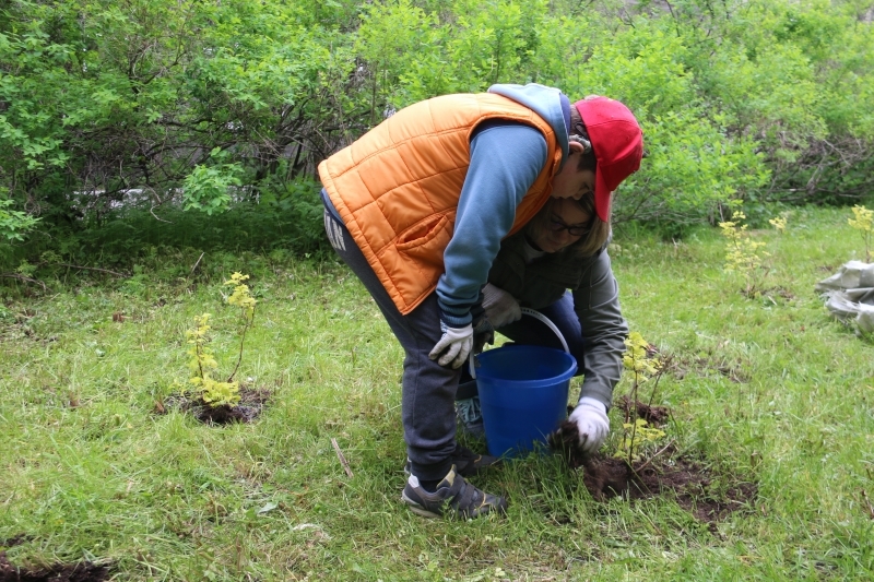 «Саженцы закуплены в организации «Цветы Заполярья» (Мурманск), откуда мы привезли 175 насаждений. На Аллее волонтеров сегодня было высажено 35 кустов пузыреплодника. Пока они еще молодые, поэтому ждать цветов прямо сейчас не стоит, но через 2-3 года они появятся и порадуют нас. Кустарник симпатичный, плоды его бывают разных цветовых гамм, при этом он хорошо адаптируется на Севере. Года два назад мы сажали подобный, он приобрел красный оттенок и хорошо прижился», - рассказала специалист КРГХ, эколог Алина Анофриева.