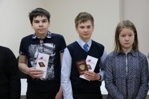 Главный документ гражданина Российской Федерации школьники получили из рук директора Североморской централизованной библиотечной системы, депутата Совета депутатов ЗАТО г.Североморск Ольги Ефименко.