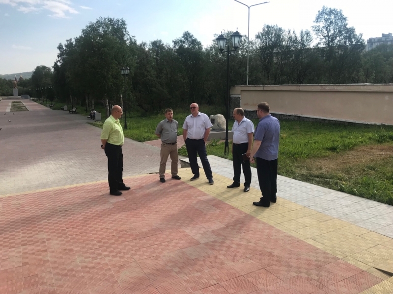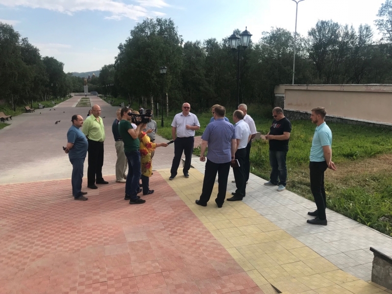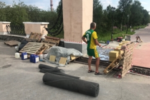 Еще одной точкой еженедельного рейда стал Городской парк. В настоящее время в нем идут работы по ремонту входной группы. Они должны были быть завершены еще неделю назад и за срыв сроков контракта на подрядчика наложат штрафные санкции.