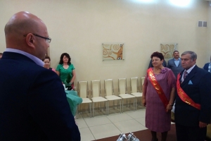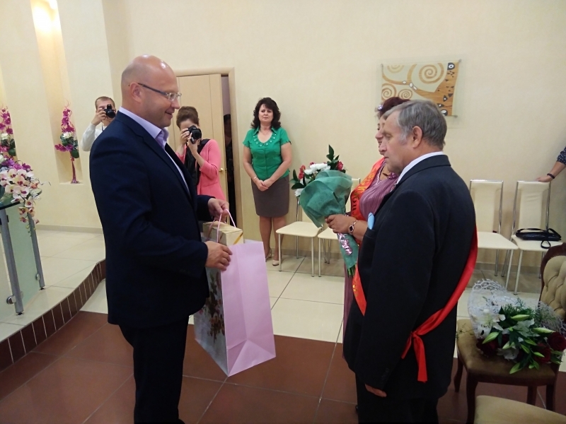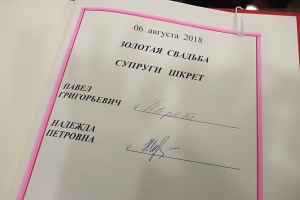 Сегодня в отделе ЗАГС ЗАТО г. Североморск чествовали золотых юбиляров - Павла Григорьевича и Надежду Петровну Шкрет. Вместе они полвека. Поздравить супружескую пару пришли родные, друзья и руководство нашего города — временно исполняющий обязанности главы ЗАТО г. Североморск Эдуард Миронов.