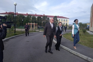 Далее два руководителя, города и области, посетили ряд важных социально-значимых объектов. Среди них 12 школа, 15 детский сад и станция юных техников.