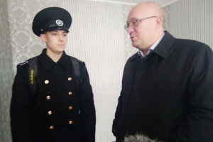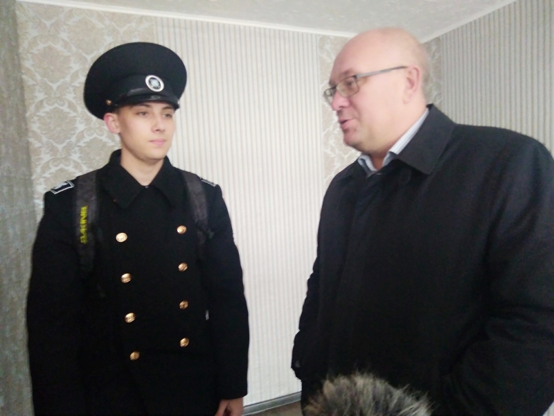 В рабочей поездке руководителя муниципалитета было две остановки. Первая - улица Флотских Строителей, 8. Одна из квартир там с хорошим ремонтом, необходимой сантехникой и новыми пластиковыми окнами теперь принадлежит Олегу Дехник. Он североморец, курсант МГТУ, будущий судоводитель. До 18 лет жил с бабушкой, она была его опекуном. Теперь для юноши начинается новая самостоятельная жизнь, собственная квартира оказалась весьма кстати.
