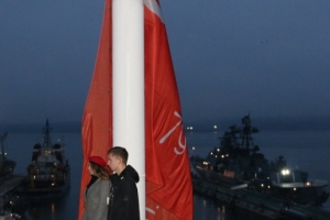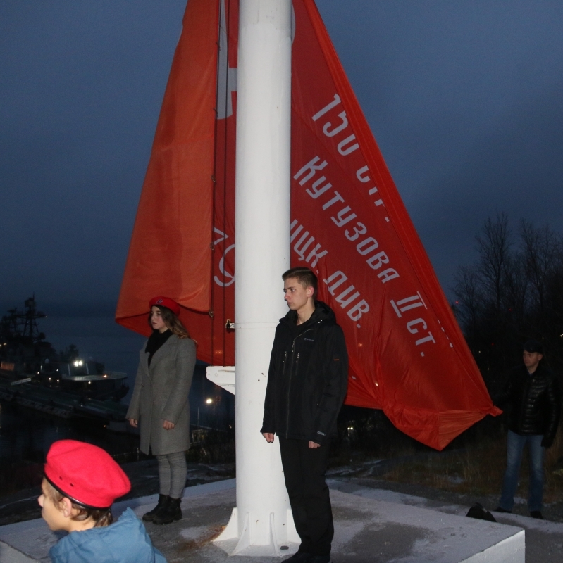 Сегодня в Североморске, состоялась торжественная церемония подъема Знамени Победы, посвященная 74-ой годовщине окончания Петсамо-Киркенесской наступательной операции и разгрома немецко-фашистских войск в Заполярье в годы Великой Отечественной войны. В честь этого события на 25-метровом флагштоке, установленном на мысе Алыш, была поднята увеличенная копия Знамени Победы.