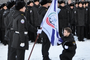 Каждый кадет после произнесенной клятвы, приклонив колено, целовал знамя кадетского корпуса и произносил слова «Служу России». За этим действом с волнением наблюдали родители ребят.