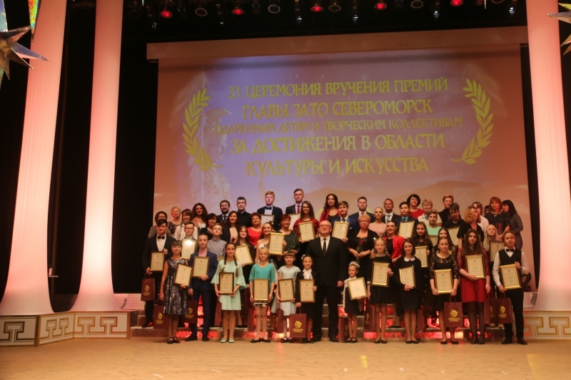 Сегодня в Североморске во Дворце культуры "Строитель" прошла торжественная церемония вручения премий главы ЗАТО г.Североморск одаренным детям и творческим коллективам за достижения в области культуры и искусства. В этом году лауреатам, за достижения в области культуры и искусства, впервые будет выплачена единовременная премия в размере 12000 рублей.