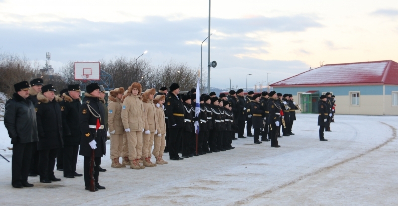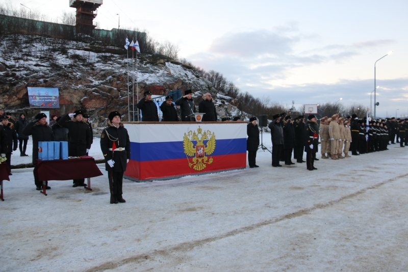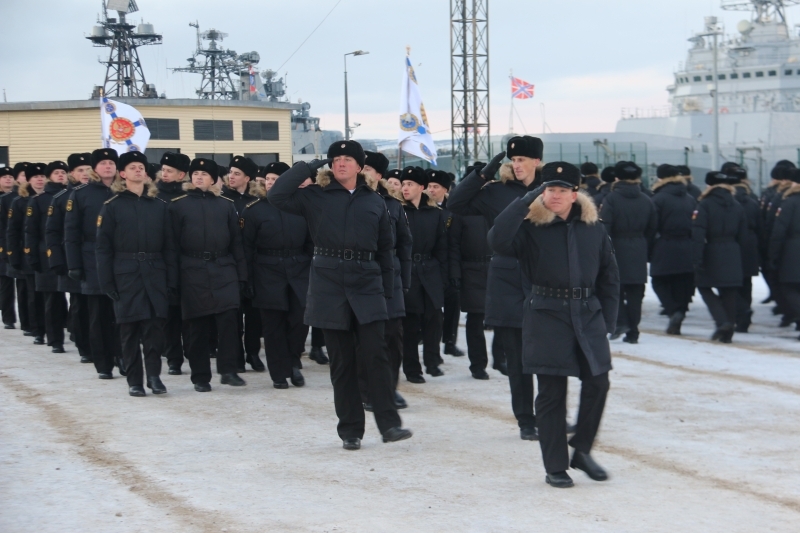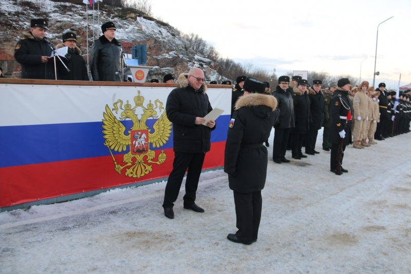 В торжественной церемонии приняли участие командующий Северным флотом адмирал Николай Евменов, Глава ЗАТО г. Североморск Владимир Евменьков, личный состав соединений надводных кораблей, базирующихся в Североморске, воспитанники Североморского морского кадетского корпуса, юнармейцы, родные и близкие моряков.