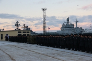 Владимир Евменьков поздравил североморцев, принимавших участие в дальнем походе, с возвращением домой. Командиру ракетного крейсера "Маршал Устинов" и капитанам судов обеспечения, вернувшимся из похода глава ЗАТО вручил благодарственные письма.