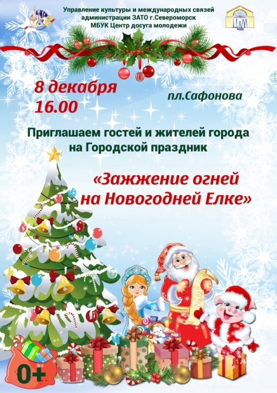 8 декабря в 16.00 в центре ул. Сафонова состоится городской праздник зажжения огней на главной ёлке Североморска.