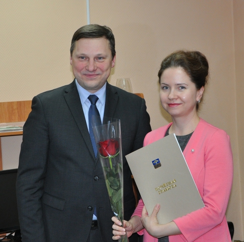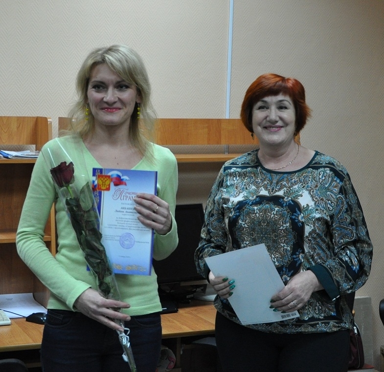 Почетные грамоты вручила своим сотрудникам корреспонденту Любови Акбашевой и дизайнеру Екатерине Бурдиной и главный редактор газеты «Североморские вести» Марина Грабаровская.