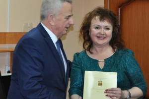 Олег Прасов от имени Главы ЗАТО г. Североморск Владимира Евменькова вручил Почетные грамоты Елене Захаровой, ответственному секретарю и Наталье Столяровой, старшему корреспонденту газеты «Североморские вести».