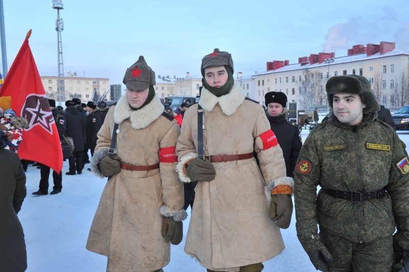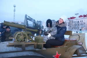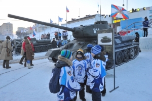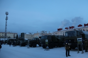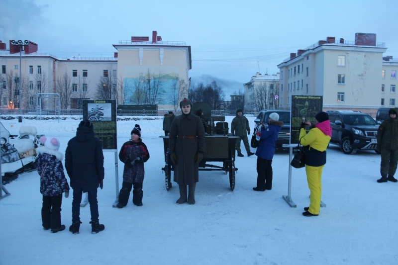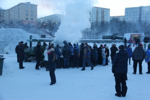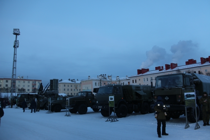 На стадионе была организована выставка исторической и современной военной техники, в том числе времён Великой Отечественной войны: легендарный Т-34 и СУ-100, пусковая установка зенитно-ракетного комплекса С-300 «Фаворит», зенитный ракетно-пушечный комплекс «Панцирь С-1», а также другая военная и специальная техника, стоящая на вооружении Северного флота.