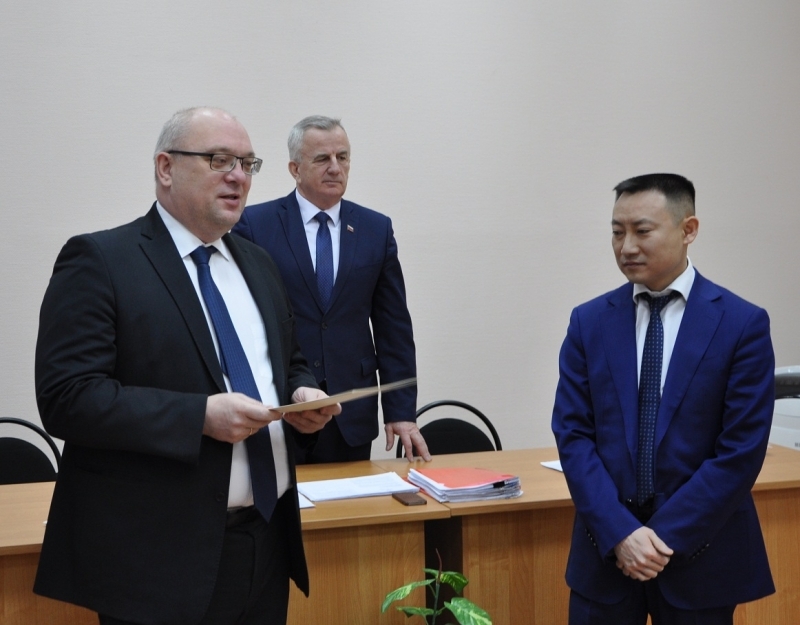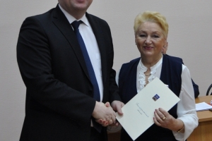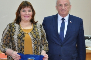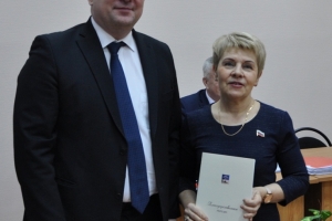 Председатель Совета депутатов Евгений Алексеев наградил ценным подарком Олесю Францискевич за активное участие в реализации проекта.