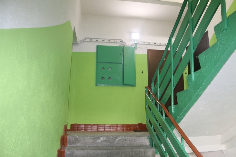 Следующий адрес Гвардейская, 34. Косметический ремонт здесь завершился несколько дней назад – произведена покраска стен, оконных рам, панелей и перил, установлены новые светодиодные энергосберегающие светильники.