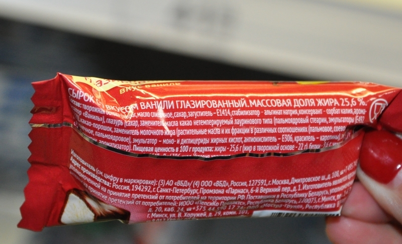 На лицевой стороне продукта, содержащего растительный жир, шрифтом не менее 2,5 миллиметра должно быть указано, что это «молокосодержащий продукт с заменителем молочного жира». Отсутствие надписи при наличии в товаре растительных жиров является нарушением.