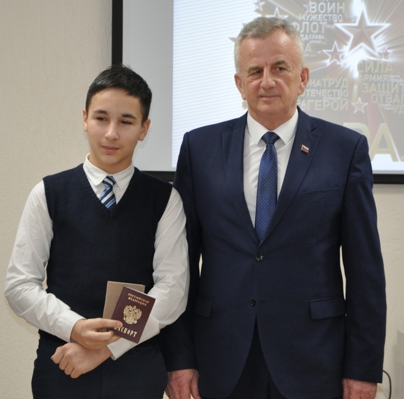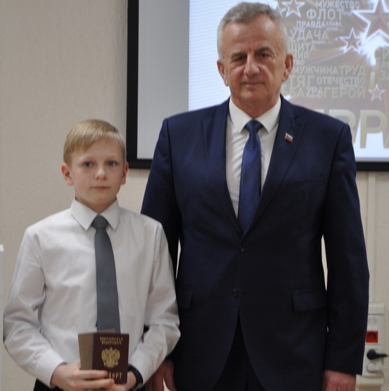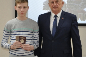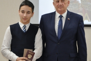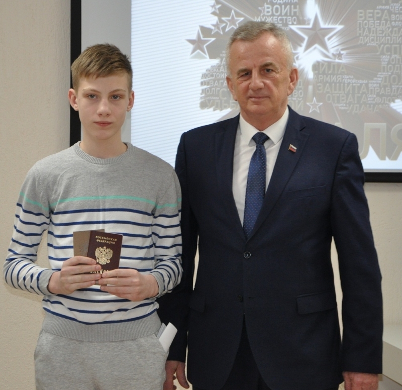 Евгений Платонович вручил ребятам паспорта, сфотографировавшись с каждым на память об этом событии.