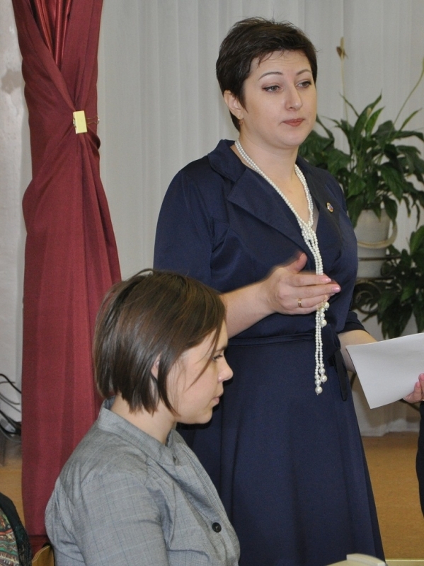 Нина Леонтьева рассказала не только о работе молодежной избирательной комиссии, но и об избирательном праве России, о том, как проходят выборы Президента России, депутатов Государственной, областной Думы и Совета депутатов. Нина Леонтьева построила выступление в виде диалога, вовлекая в беседу учащихся.