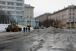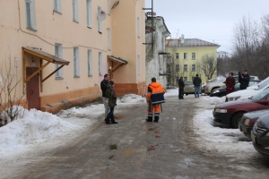 В рамках объезда объектов городской инфраструктуры глава ЗАТО Владимир Евменьков проверил ход уборки североморских улиц и дворов от снега и наледи, а так же побывал в п.г.т. Сафоново, где на ул. Преображенского, 3 проводилась уборка скопления снега на крыше.