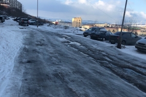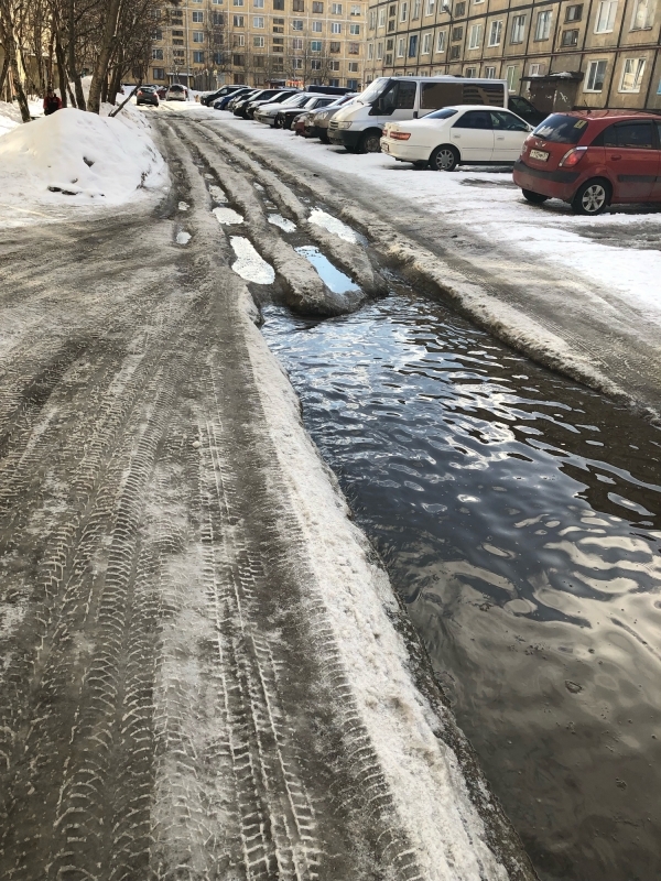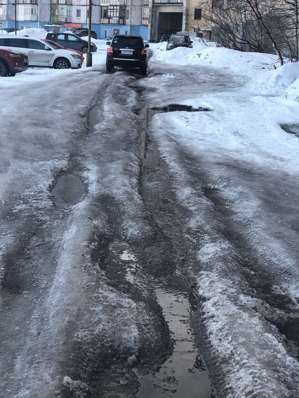 В адрес главы ЗАТО г.Североморск Владимира Евменькова поступало большое количество жалоб на содержание придомовой территории от жителей дома 22 по улице Гвардейской. Ранее в ходе проверки сотрудниками муниципального контроля было оформлено предписание управляющей компании на устранение замечаний – наледь, скопление талой воды, колейность на проезжей части придомовой территории. Сегодня по данному адресу представители муниципального контроля провели повторную проверку - все замечания были устранены.