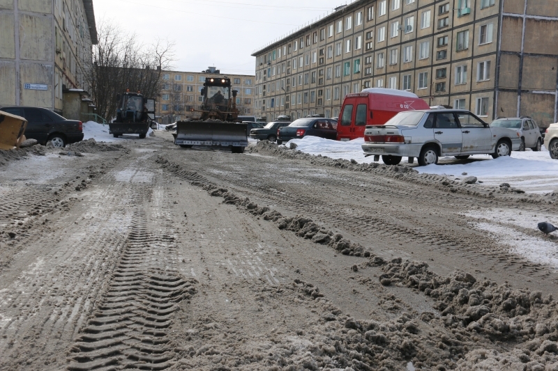 По указанию главы ЗАТО г.Североморск Владимира Евменькова продолжается работа ежедневного контроля за ходом выполнения работ по содержанию придомовых территорий многоквартирных домов управляющими компаниями.