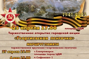В четверг, 25 апреля, в 17.00 у североморского Центра досуга молодежи стартует городская акции "Георгиевская ленточка".
