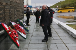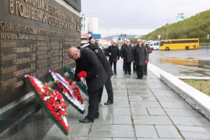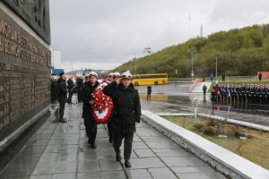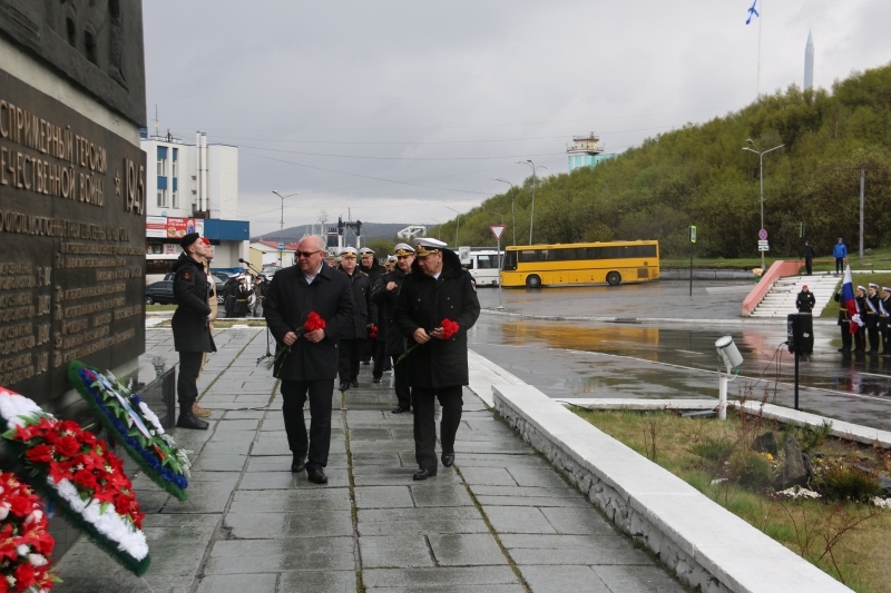 На центральной улице Североморска -  Сафонова состоялась строевая прогулка военнослужащих Североморского гарнизона. Представители командования Северного флота и администрации ЗАТО г.Североморск  почтили память воинов-североморцев погибших в годы Великой Отечественной войны. Командующий Северным флотом Герой России вице-адмирал Александр Моисеев, глава ЗАТО г.Североморск Владимир Евменьков, ветераны Северного флота возложили венки и цветы к подножию памятника Героям-североморцам, защитникам Советского Заполярья на Приморской площади флотской столицы.