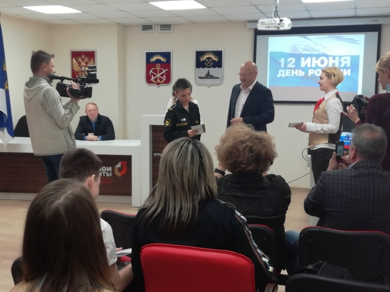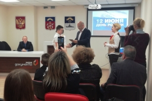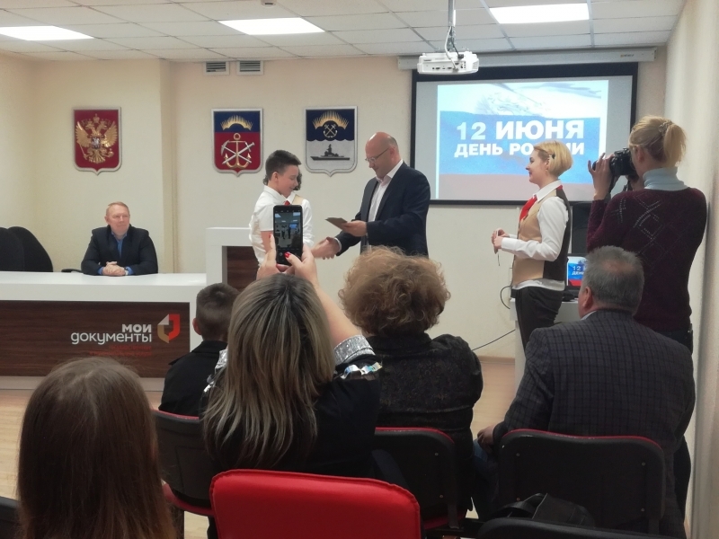 Торжественная церемония вручения паспортов юношам и девушкам, достигшим 14-летия, в североморском Многофункциональном центре «Мои документы» пользуется популярностью. На этот раз мероприятие было приурочено к самому важному государственному празднику нашей страны - Дню России. 7 юных североморцев получили свой главный в жизни документ из рук первого заместителя Главы ЗАТО г. Североморск Эдуарда Миронова.
