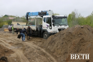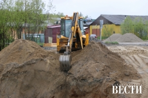 Полным ходом идут работы по строительству моста в Североморске-3. Рабочие завершили подготовительный этап и перешли непосредственно к работам на объекте - установке септика с выходом на дорогу.