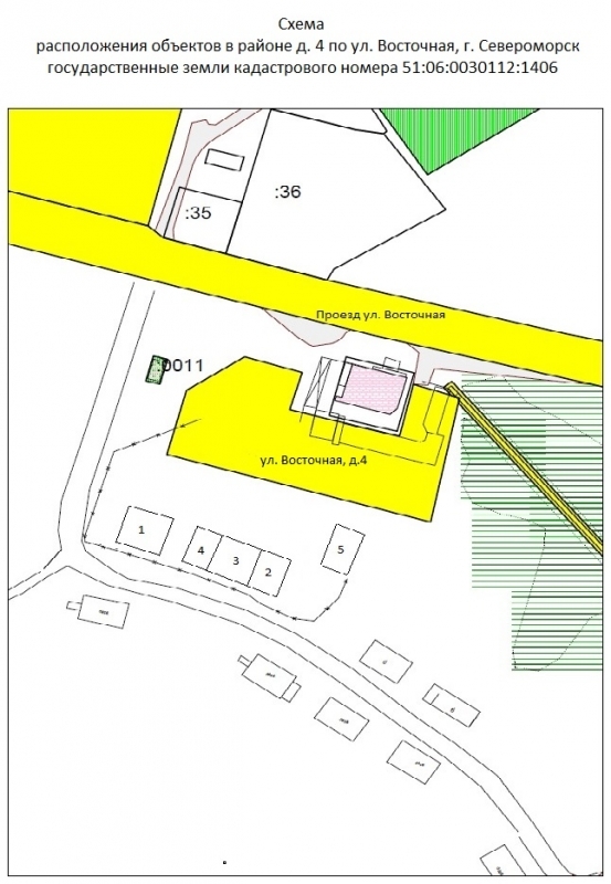 Схема размещения самовольно установленных объектов, расположенных по адресу: Мурманская обл., ЗАТО г, Североморск в районе д.4 по ул. Восточная (кадастровый номер 51:06:0030112:1406) |