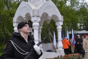 Здесь же прошла и еще одна акция «Горсть Памяти» - земля, взятая с могил воинов и помещенная в спецкисет, отправится в Москву, в Кубинку, и найдет свое место у православного храма, возводимого Минобороны РФ в парке «Патриот».