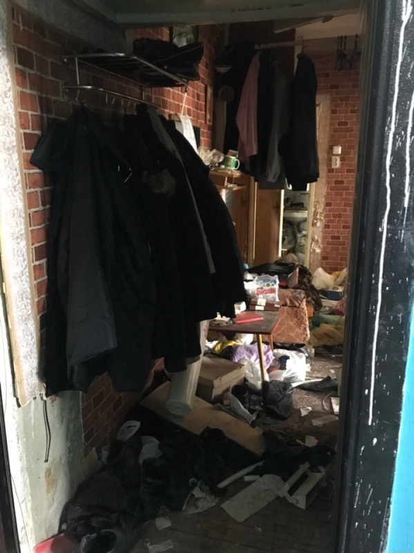 Следующей и финальной точкой еженедельного рейда стала брошенная муниципальная квартира в доме № 3 по ул. Адмирала Сизова. На сегодняшний день она завалена мусором и не пригодна для проживания.